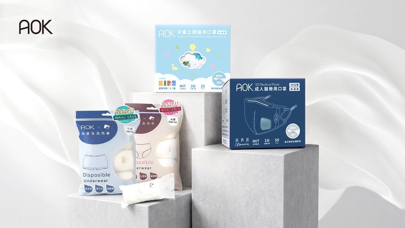 AOK的立體醫療口罩採用了「專利調節扣」,讓你可以根據臉型微調耳繩長度,達到最精準的服貼感,不再受耳後壓迫或側邊縫隙所苦。而 AOK 的純棉免洗內褲更是我們引以為傲的作品,針對亞洲人身形特別開版設計,搭配純棉加厚材質,確保包覆感十足且「不卡臀」。